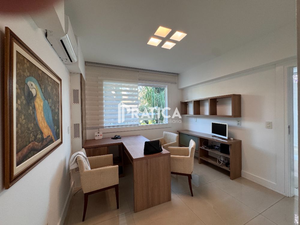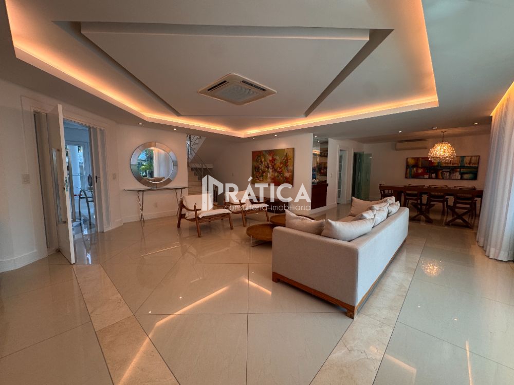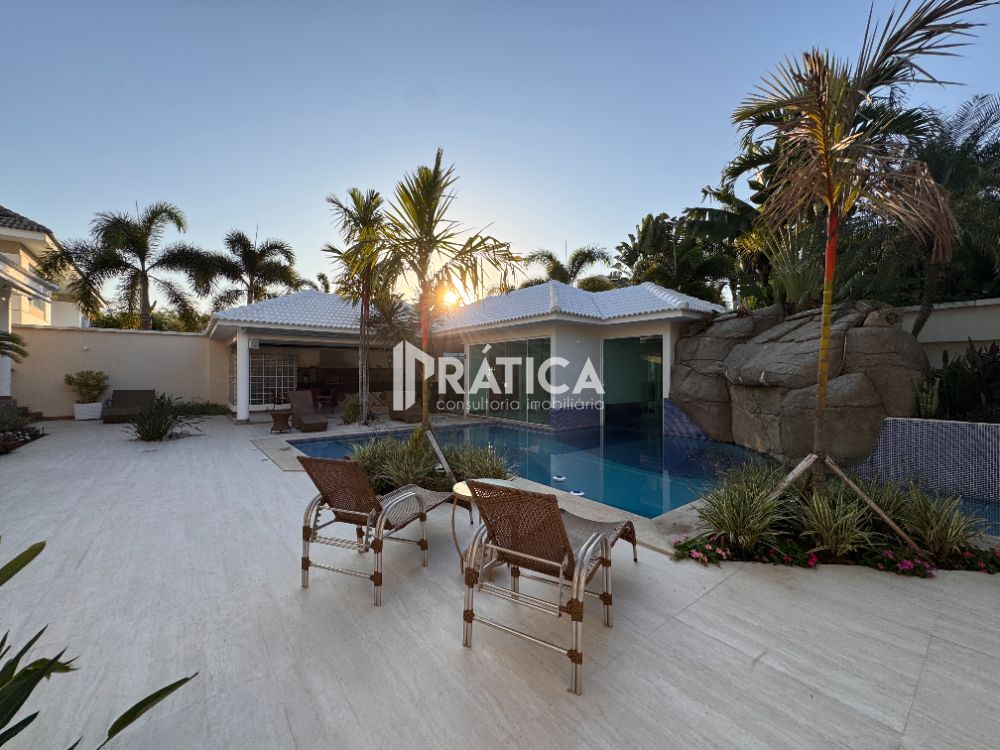 SANTA MONICA JARDINS - Linda casa triplex mais subsolo, impecável, excelente acabamento, com elevador, composta de no primeiro piso: Hall de entrada, elevador, sala de estar em vários ambientes, sala de jantar, adega, cinema, suíte térrea, lavabo, copa, cozinha planejada, área de serviço e lavandeira. No segundo piso, 4 amplas suítes com closets, sendo a master com hidro. Terceiro piso com sala de estar e amplo ambiente podendo ser suíte. Subsolo grande com dependência de funcionário. Lazer com piscina com iluminação e cascata, sauna integrada a piscina com área de repouso, área gourmet com churrasqueira, forno de pizza, bar, banheiro de apoio e lindo paisagismo. Nossa empresa é especializada no alto luxo da Barra da Tijuca e do Recreio dos Bandeirantes, temos outras opções nos condomínios: Del Lago, Quintas do Rio, Santa Mônica Jardins, Santa mônica, Riserva Uno, Riserva Golf, Pedra de Itaúna, Alphaville, Crystal Lake, Villagio Felicitá, Lafayette de Andrada, Pedra de Itaúna, Mansões, Malibu, Mandala, Blue Houses, Rio Mar, Bothanica Nature, Parque das palmeiras, Art life, Riviera del sol, Novo Leblon, Park Palace, Wimbledon Park, Jardim Ibiza, Lagoa Mar, Arouca, Itanhangá, Porto dos Cabritos, Alameda dos Eucaliptos, Jardim Oceânico, Jardim Marapendi, Santa Lúcia, Santa Helena, Santa Marina, Sernambetiba, Nova Ipanema, Village Marapendi, Vivendas do Bosque, Jardim Barra da Tijuca, Interlagos de Itaúna e Interlagos Quality.